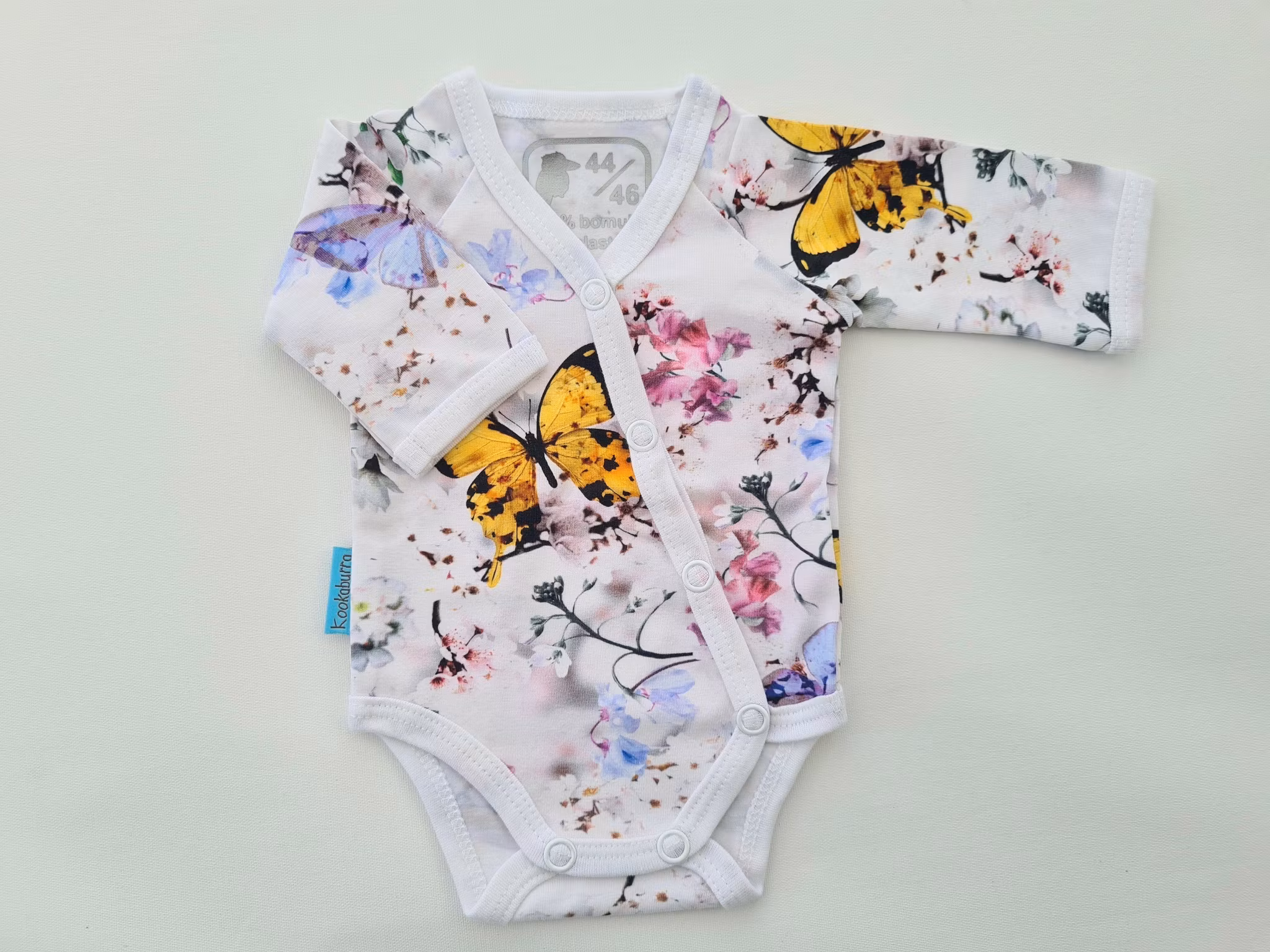 Prematurbody Fjäril strl 44/46 180 kr Fuskomlottbody med söta blommor och fjärilar. Helt öppningsbar fram för att undvika att plagget dras över barnets huvud. I lager Lägg i korgen Produktbeskrivning Recensioner Fuskomlottbody med söta blommor och fjärilar.Prematurstorlek 44/46. Helt öppningsbar fram för att undvika att plagget dras över barnets huvud. Så kallad fuskomlott som innebär att framstyckets delar möts vid knäppningen, d.v.s. inga dubbla tygstycken på bröstkorgen. Eventuella sladdar leds enkelt ut genom knäppningen. Sydd på overlock- och coverlockmaskiner för professionella och hållbara sömmar. Tygerna är tvättade med parfymfritt tvättmedel innan sömnad. Detta för att undvika krympning, färgning och eventuellt vridning av plagget. Mjukt och skonsamt tyg tillverkat av 95% bomull och 5% elastan.Tvättråd maskintvätt 40°C, ej torktumling.
