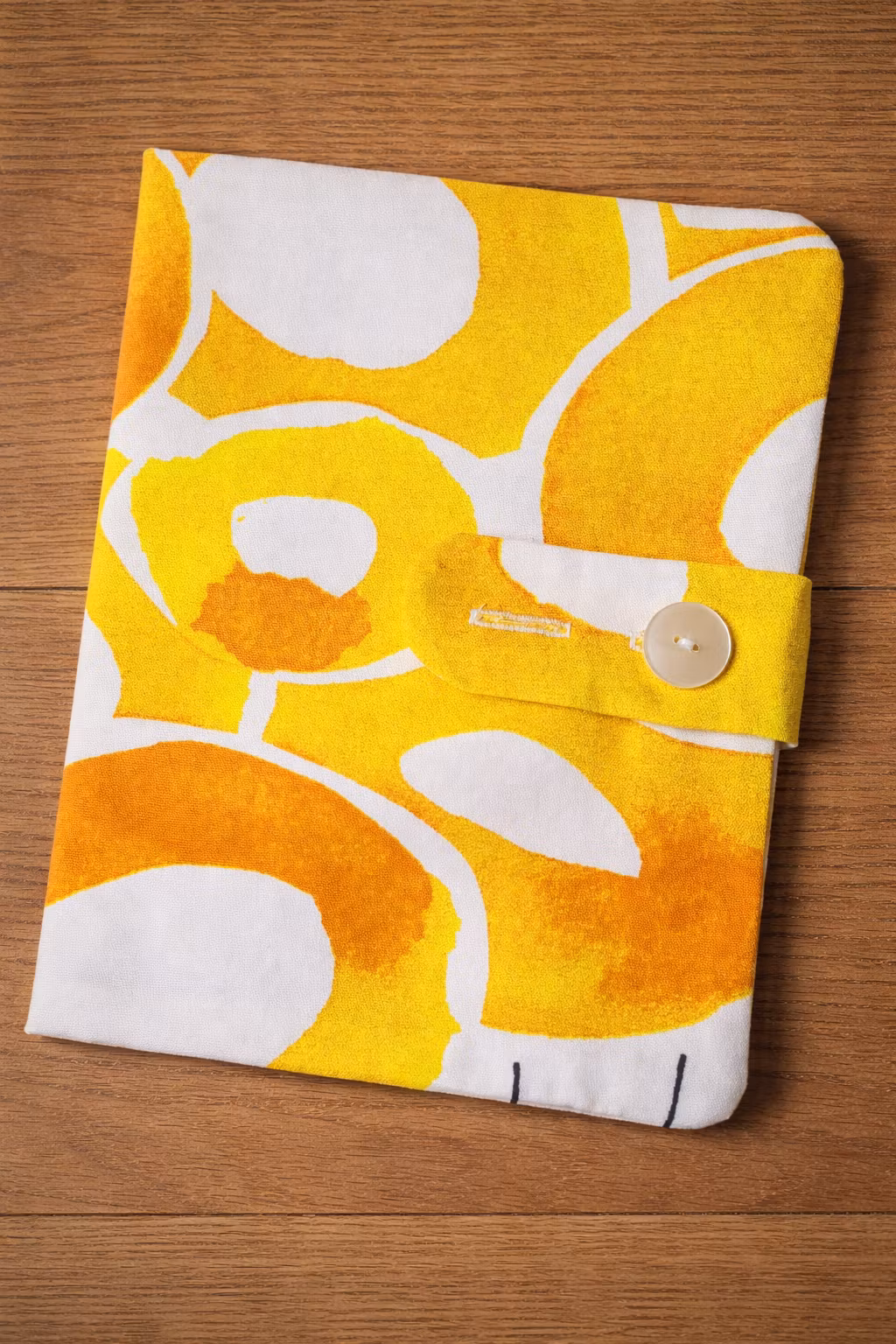 Fodralet är gjort av återbrukat tyg, detta av oanvänt tidigare gardintyg.