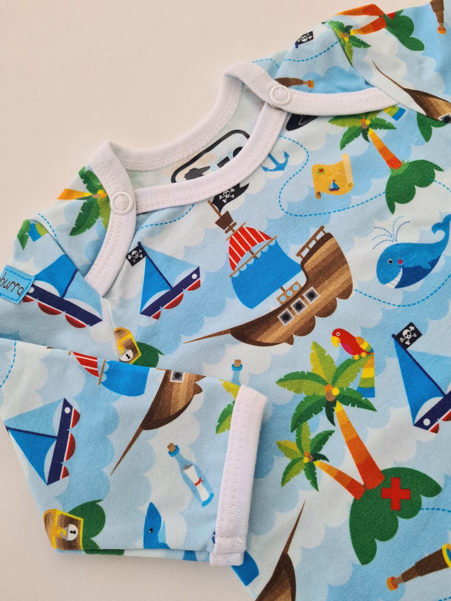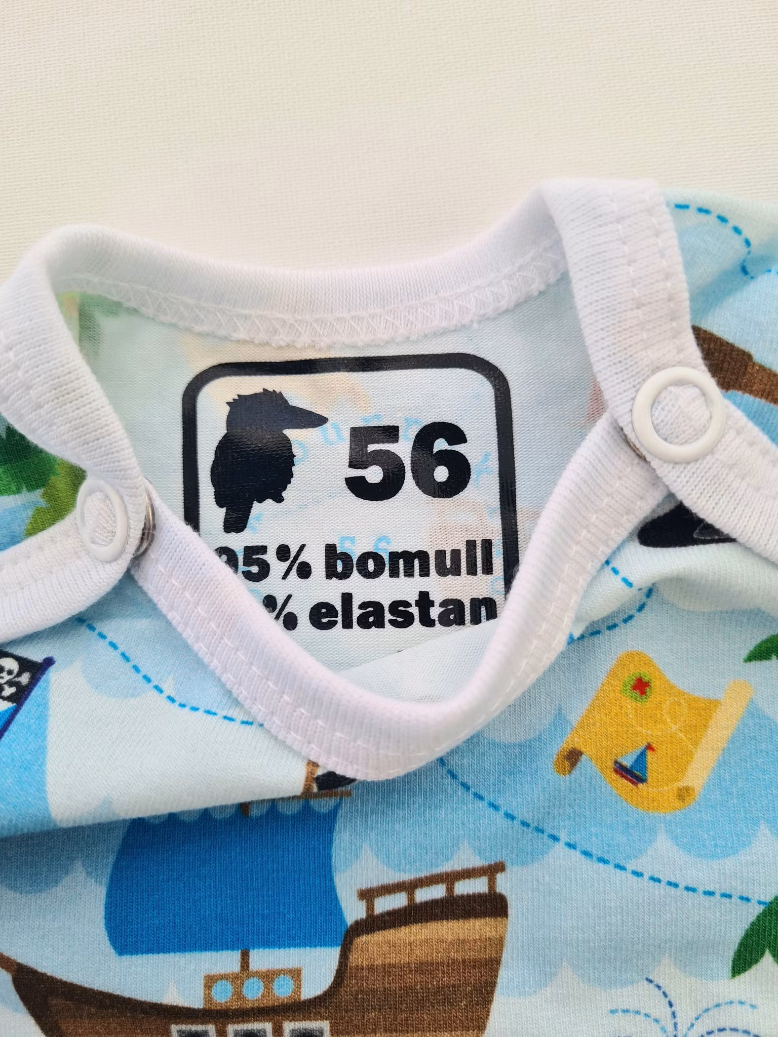 Kuvertbody Pirater strl 56, 2:a sortering 200 kr Kuvertbody med Pirattema. Sydd på overlock- och coverlockmaskiner för professionella och hållbara sömmar. I lager Lägg i korgen Produktbeskrivning Recensioner Kuvertbody med Pirattema.Storlek 56.På nackens insida finns dubbla tryck p.g.a. byte av märkningsmetod (se bild).Sydd på overlock- och coverlockmaskiner för professionella och hållbara sömmar. Tygerna är tvättade med parfymfritt tvättmedel innan sömnad. Detta för att undvika krympning, färgning och eventuellt vridning av plagget.Mjukt och skonsamt tyg tillverkat av 95% bomull och 5% elastan.Tvättråd maskintvätt 40°C, ej torktumling.GOTS-certifierad bomull.