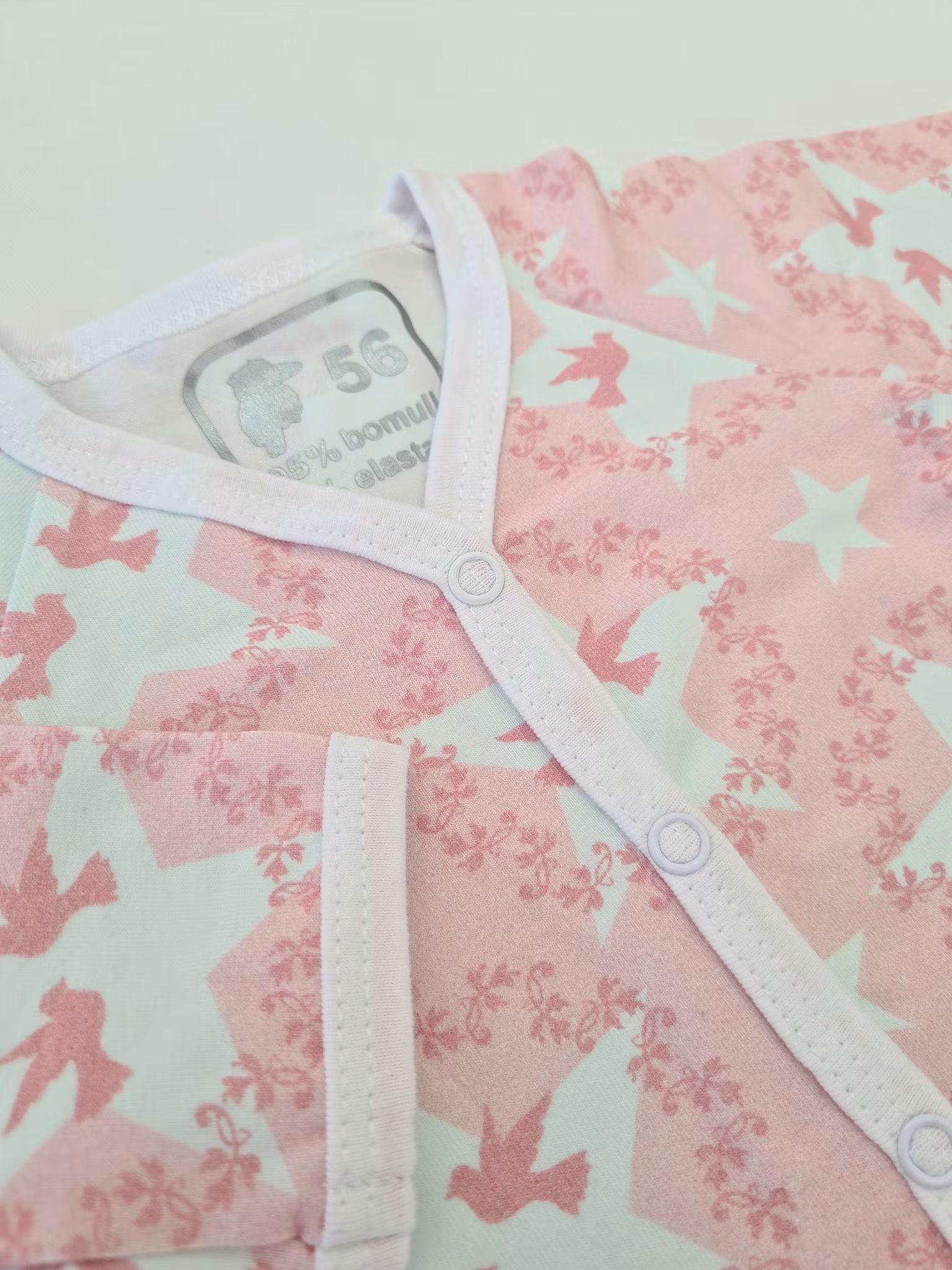 Baggydress Rosa Duvor strl 56 310 kr Baggydress med duvor och stjärnor. Baggymodell som ger extra rymlighet och bekvämlighet för barnet. I lager Lägg i korgen Produktbeskrivning Recensioner Baggydress med duvor och stjärnor.Storlek 56. Baggymodell som ger extra rymlighet och bekvämlighet för barnet.Mudd som kan vikas ned för att förlänga användningstiden.Sydd på overlock- och coverlockmaskiner för professionella och hållbara sömmar. Mjukt och skonsamt tyg tillverkat av 95% bomull och 5% elastan.Tygerna är tvättade med parfymfritt tvättmedel innan sömnad. Detta för att undvika krympning, färgning och eventuellt vridning av plagget. Tvättråd maskintvätt 40°C, ej torktumling. GOTS-certifierad bomull.