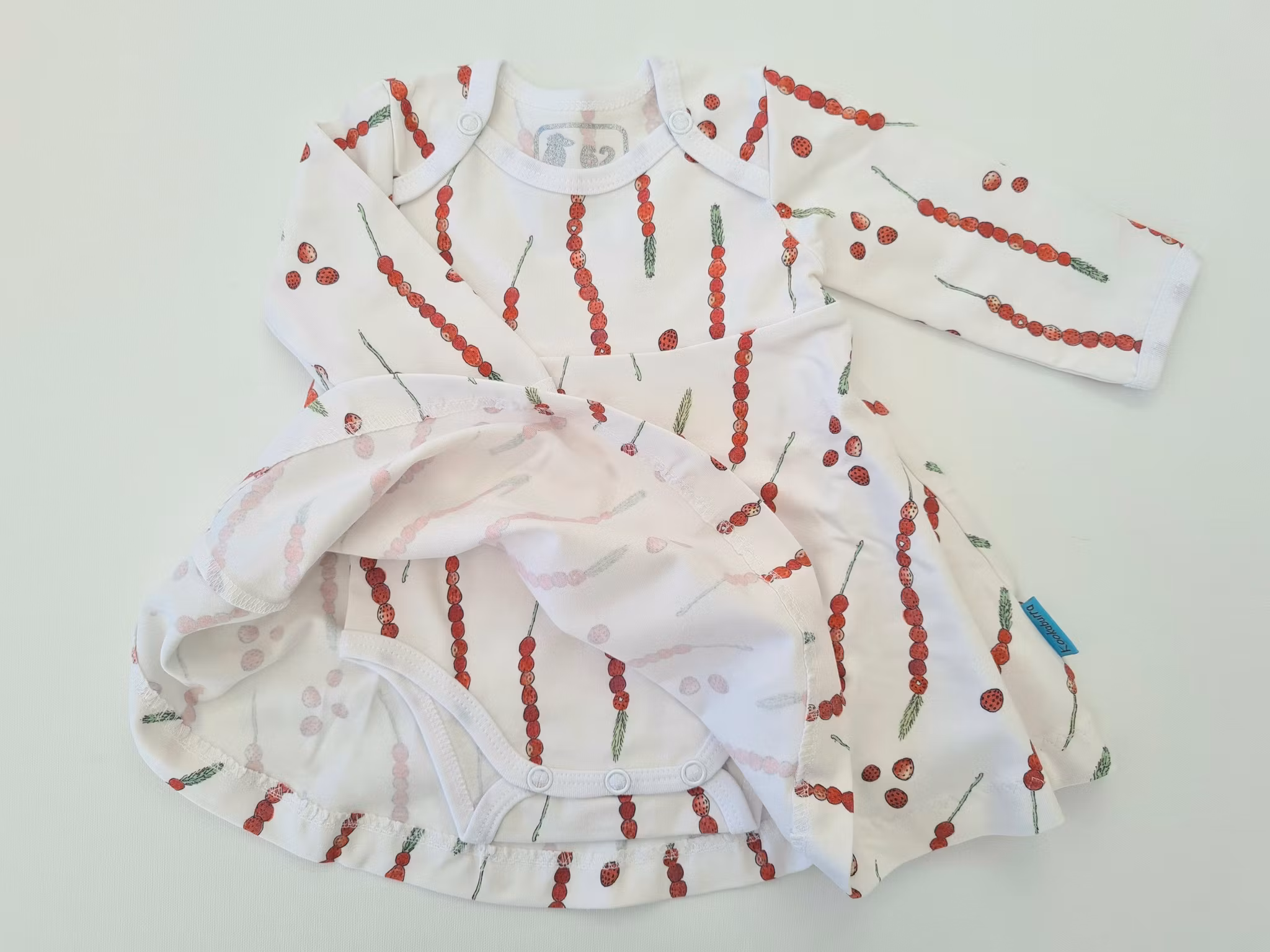 Bodyklänning Smultronstrå strl 62 350 kr Bodyklänningen har bodyns underdel fastsydd. Bekvämt eftersom det förhindrar att det blir glipor när man lyfter barnet. I lager Lägg i korgen Produktbeskrivning Recensioner Bodyklänning med kjol.Storlek 62.Klänningen är gjord så att bodyns underdel är fastsydd. Det förhindrar att det blir glipor när man lyfter barnet.Sydd på overlock- och coverlockmaskiner för professionella och hållbara sömmar. Tygerna är tvättade med parfymfritt tvättmedel innan sömnad. Detta för att undvika krympning, färgning och eventuellt vridning av plagget. Mjukt och skonsamt tyg tillverkat av 95% bomull och 5% elastan.Tvättråd maskintvätt 40°C, ej torktumling.Ekologisk bomull från GOTS-certifierad fabrik.