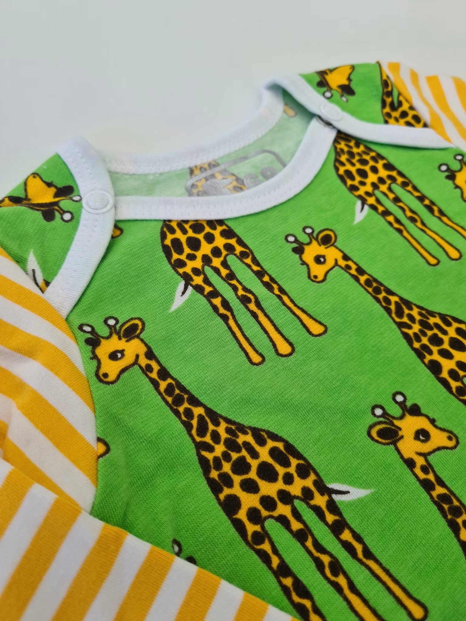 Kuvertbody Vändbara Giraffer strl 68 250 kr Kuvertbody med giraffer fram- och bakifrån. Sydd på overlock- och coverlockmaskiner för professionella och hållbara sömmar. I lager Lägg i korgen Produktbeskrivning Recensioner Kuvertbody med giraffer.Storlek 68.På plaggets baksida syns girafferna bakifrån.Sydd på overlock- och coverlockmaskiner för professionella och hållbara sömmar. Tygerna är tvättade med parfymfritt tvättmedel innan sömnad. Detta för att undvika krympning, färgning och eventuellt vridning av plagget. Mjukt och skonsamt tyg tillverkat av 95% bomull och 5% elastan.Tvättråd maskintvätt 40°C, ej torktumling.